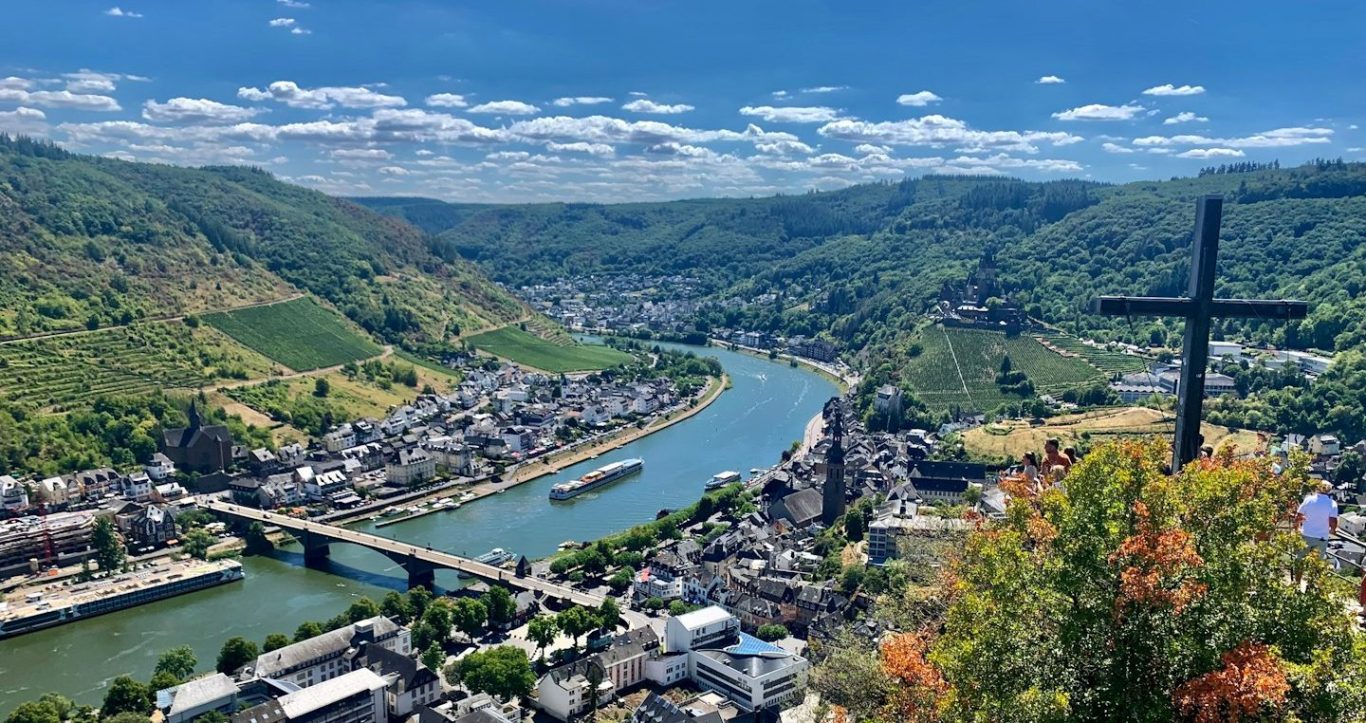 Ortsansicht von Cochem mit dem Pinnerkreuz. Quelle: Unsplash Foto - Ionos Bibliothek