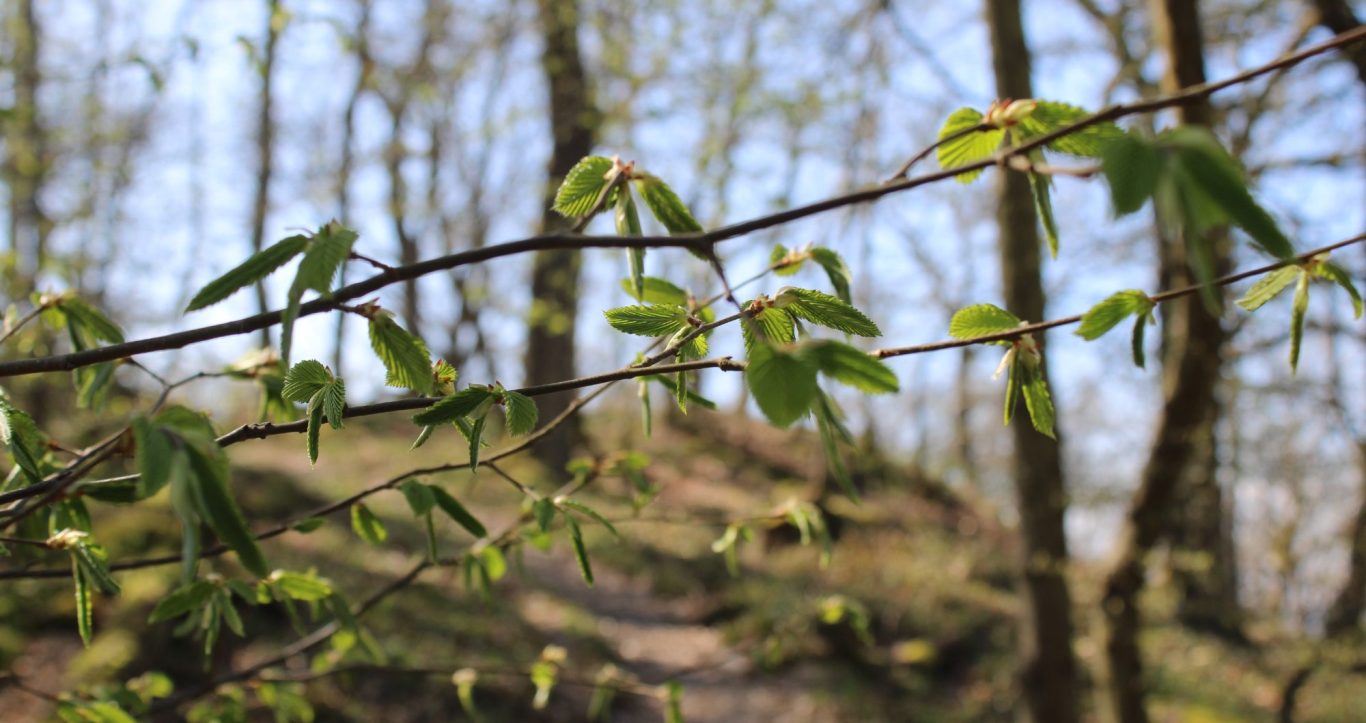 Aufstieg durch den Wald. Es grünt und blüht schon im Ländle.