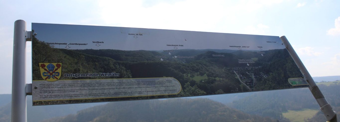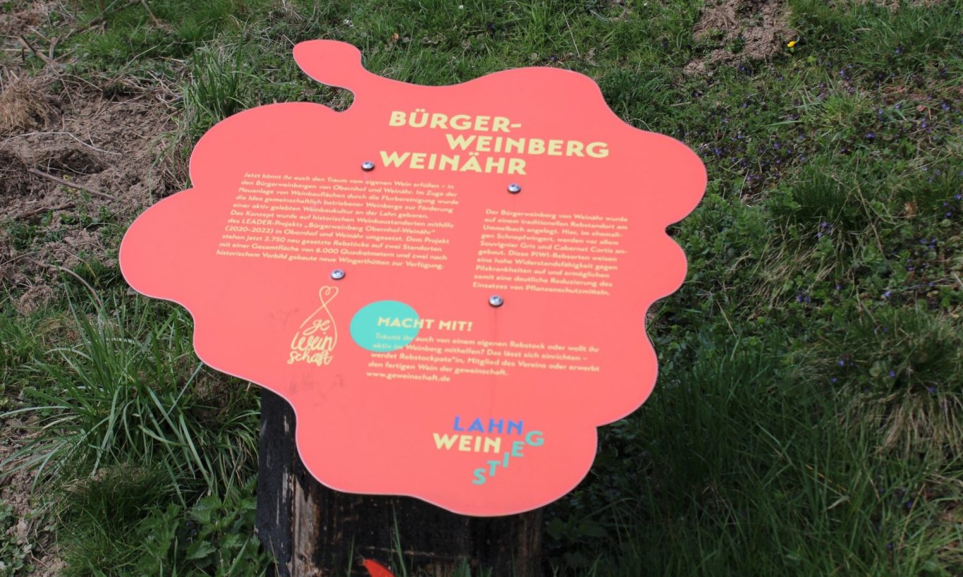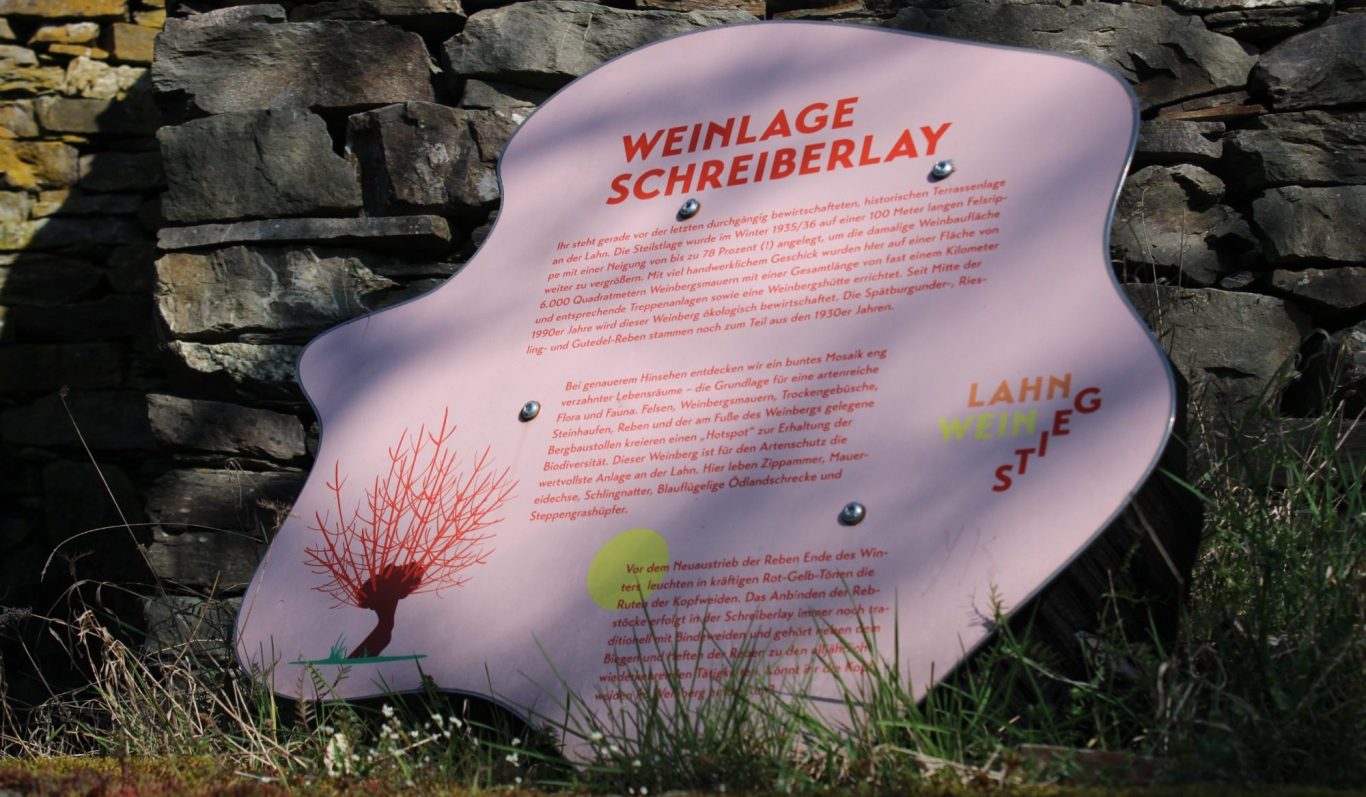 Die Informationstafel hält historisches Wissen bezüglich des Weinbaus im Lahntal parat.