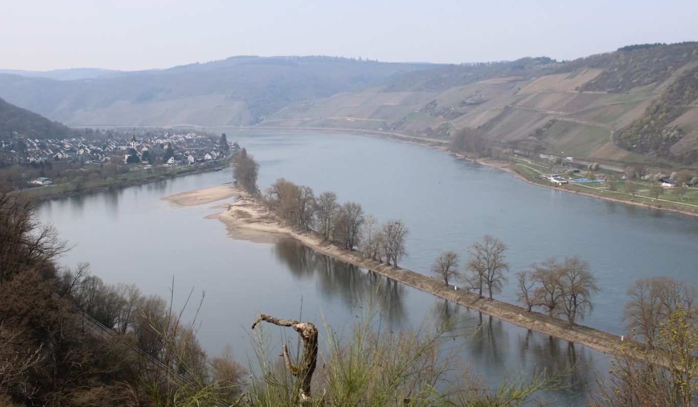 Aussicht von der Kipplei-Spitze ins Mittelrheintal mit dem Osterspaier „enge Thürchen“.