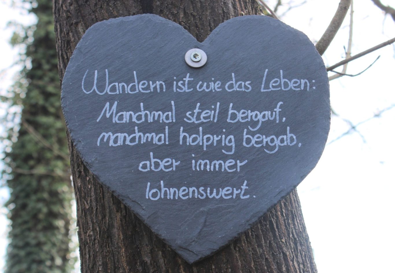 Entlang der Wegstrecke hängen immer wieder motivierende Schiefertafeln und die teils schon üppige Blütenpracht mobilisiert unsere Wanderlust gleich doppelt.