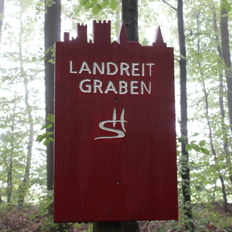 Sogleich den Stadttrubel im Rücken, passieren den Waldspielplatz, schlendern durch den Landreitgraben und gelangen schließlich zur L 219, die wir überqueren. Mit Nieselregen im Gepäck lassen wir eine einladende Schutzhütte am Wegesrand tapfer liegen und queren an der Laubacher Grillhütte abermals die L 219.