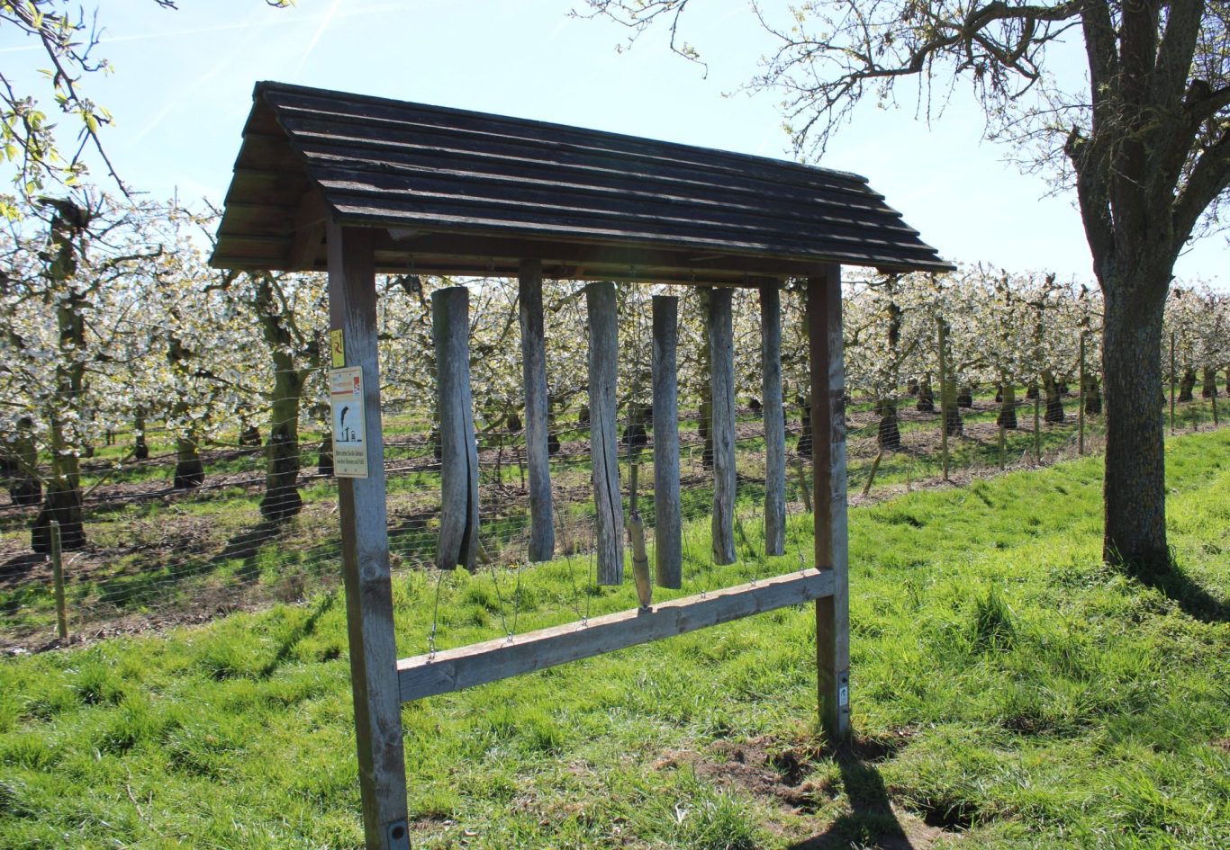 Bereit für den nächsten Augenschmaus wandern wir im schattigen Schutz von Bäumen und Sträuchern dem Obstlehrpfad entgegen, der allerlei Informationen bezüglich des hiesigen Obstanbaus der Region parat hält.